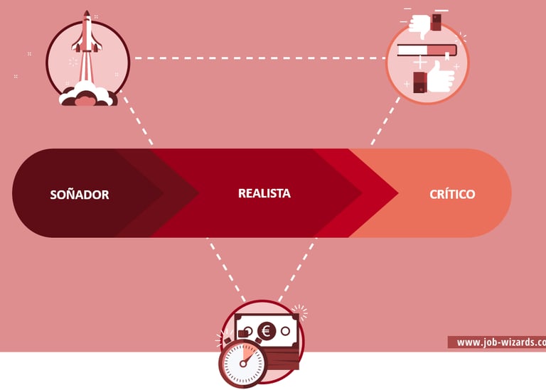En los 90, el autor Robert B. Dilts desarrolló una técnica creativa que ayuda a grupos de cuatro a seis personas a desarrollar nuevas ideas y soluciones. Para ello se utilizan tres roles que Walt Disney desarrolló durante su proceso creativo: